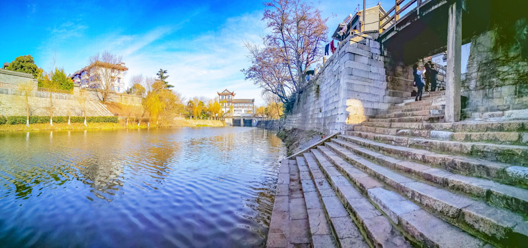 漫步300余米的邵伯古堤,桥梁、堰坝、码头、牌坊、亭榭绵延不绝。白天,居民在沿岸码头淘米洗菜的场景生动而淳朴;每天早晚,古堤则是镇区居民散步休闲的首选场所。生生不息的运河人家,在醉人烟火气中,叙说着古镇的繁华记忆和别样未来。