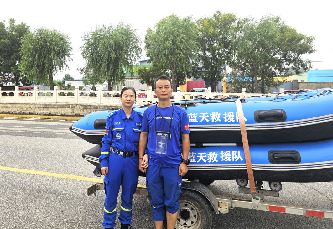 闪平称,这次在涿州,妻子负责与指挥部联系后勤保障,及时回传任务信息,还操舟驾艇投送应急物资,接送被困人员。暂停休整时,夫妻俩才互相交流一下救援信息,一起吃罐八宝粥。