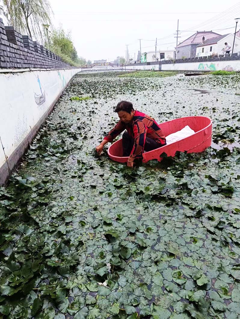 祖祖辈辈生活在邵伯湖边,杜九香水上的活儿是一把好手,即便已进入“古来稀”的年龄,摇着橹儿一点也不费劲,木盆很快便划进菱区,开始了一天的劳作。