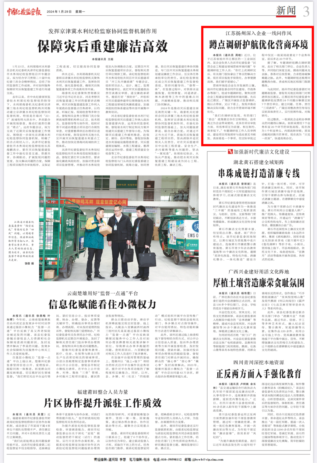 1月29日,《中国纪检监察报》刊发报道《江苏扬州深入企业一线问作风 蹲点调研护航优化营商环境》。扬州发布现全文转发,以飨读者。