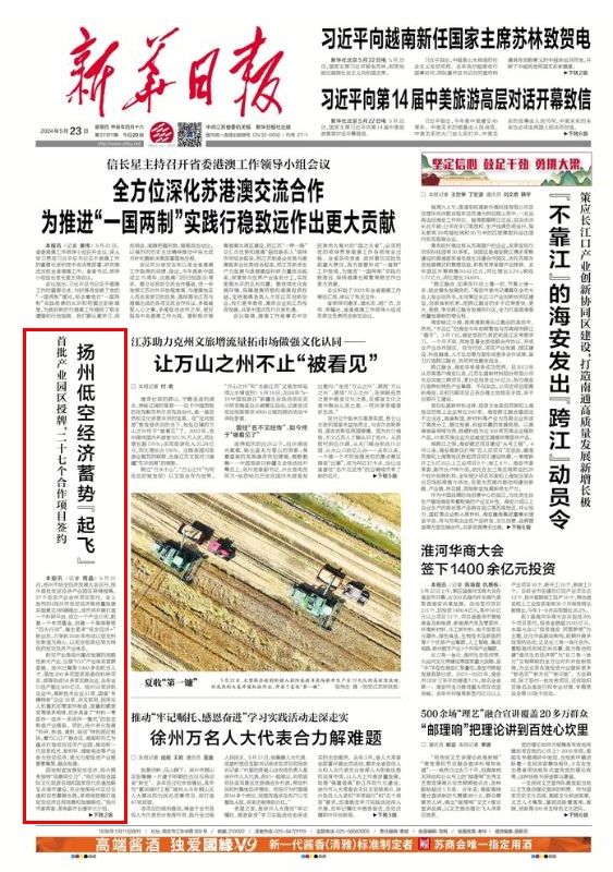 5月23日,《新华日报》刊发报道《扬州低空经济蓄势“起飞”》。现全文转发,以飨读者。