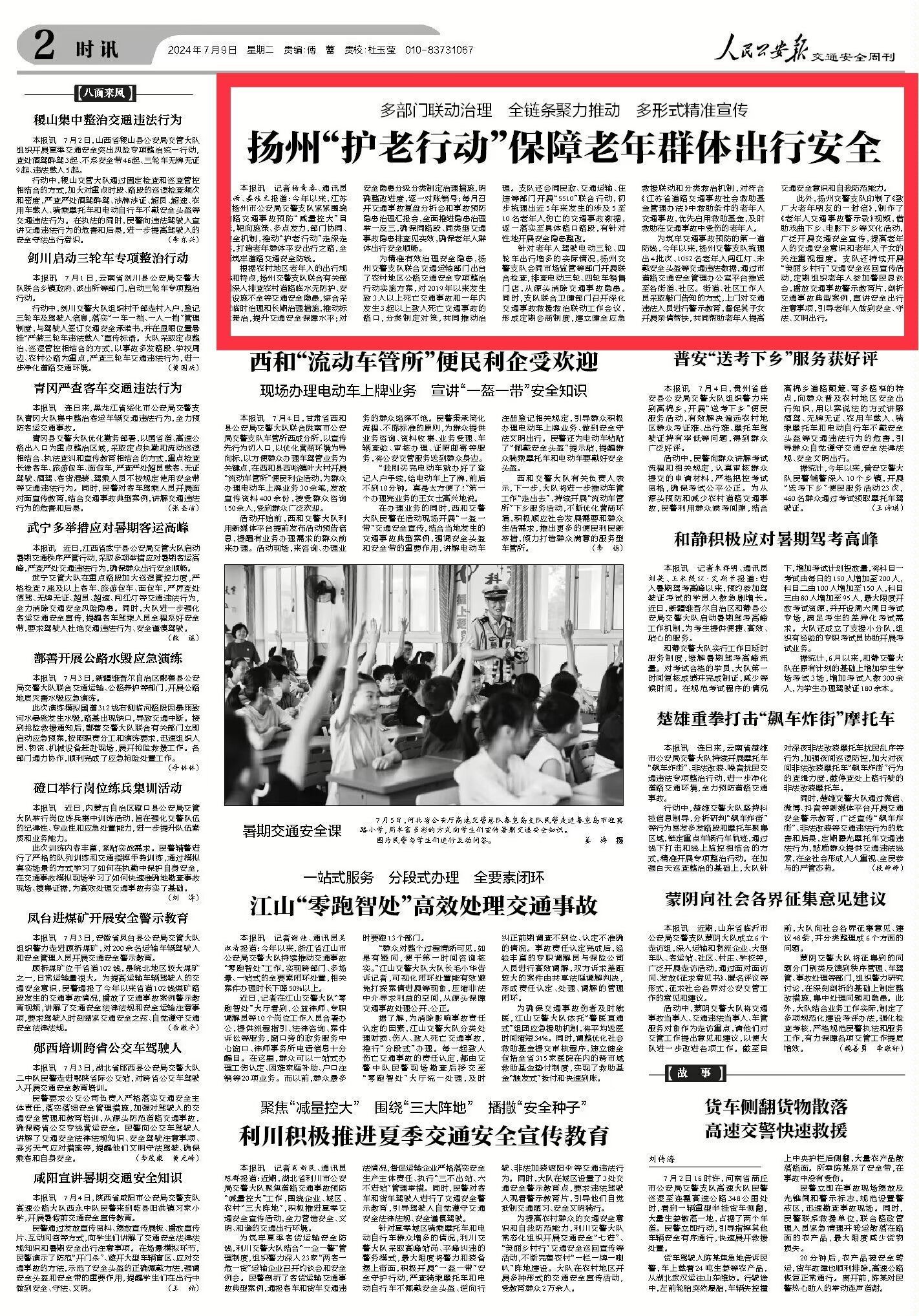 编者按:7月9日,《人民公安报·交通安全周刊》第2版刊发题为《扬州“护老行动”保障老年群体出行安全》的报道,现全文转载。