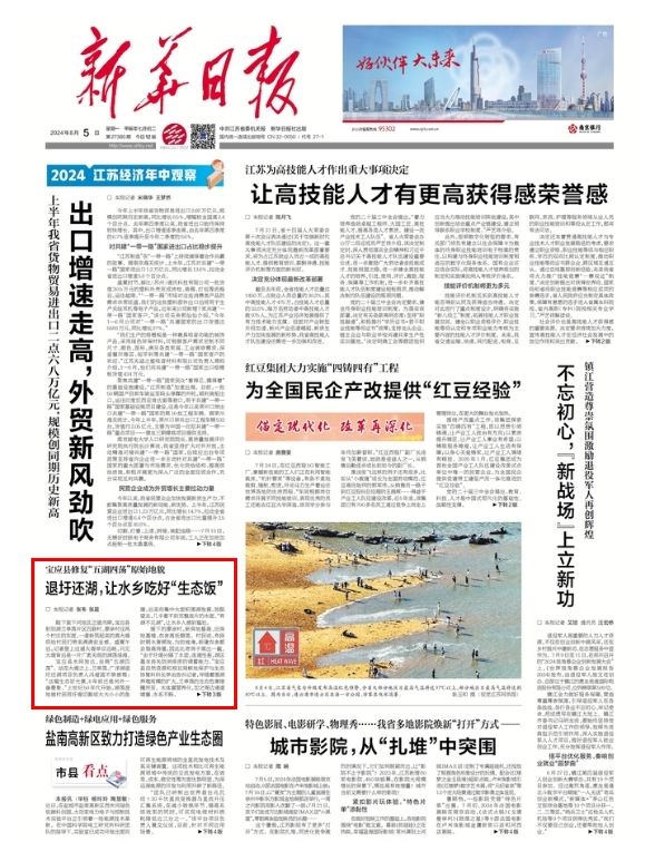 8月5日,《新华日报》头版刊发题为《退圩还湖,让水乡吃好“生态饭”》的文章,现全文转发,以飨读者。
