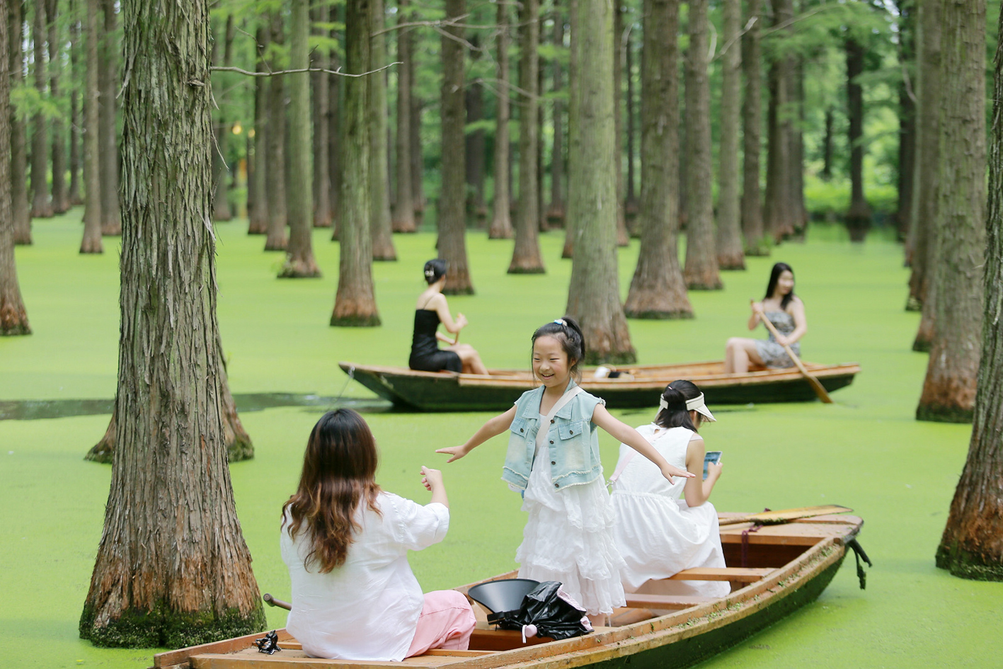 游客在渌洋湖湿地公园游玩。 孟德龙 摄