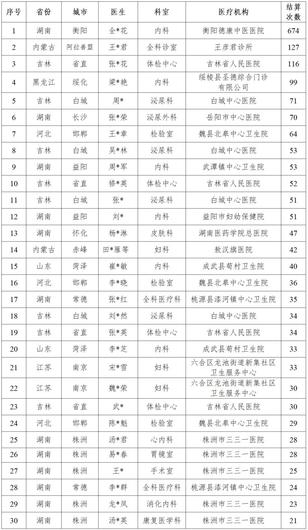 表2 为男性开具妇科类诊疗排名靠前的医生