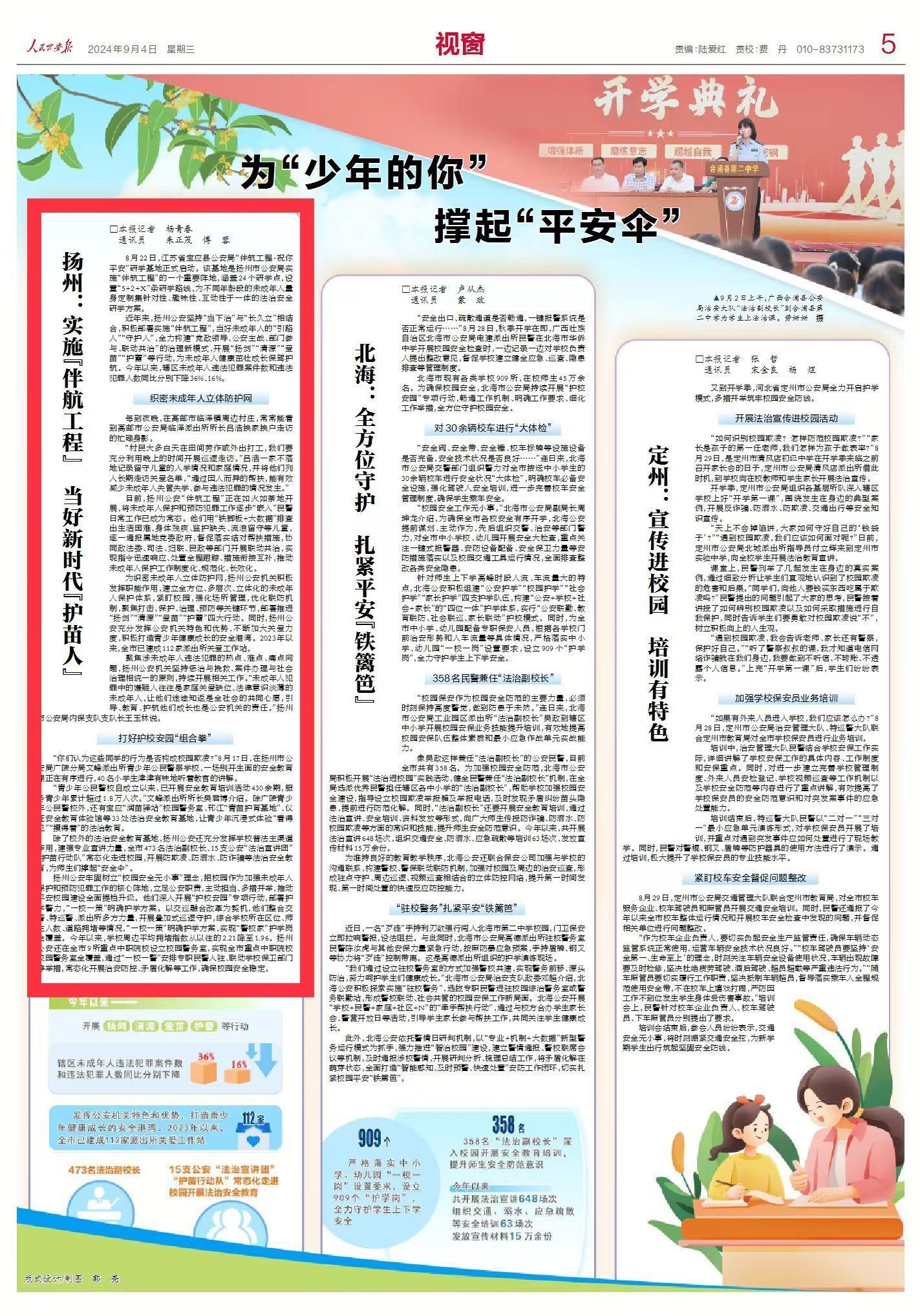 9月4日,《人民公安报》刊发题为《扬州:实施“伴航工程” 当好新时代“护苗人” 》的文章,现全文转发,以飨读者。