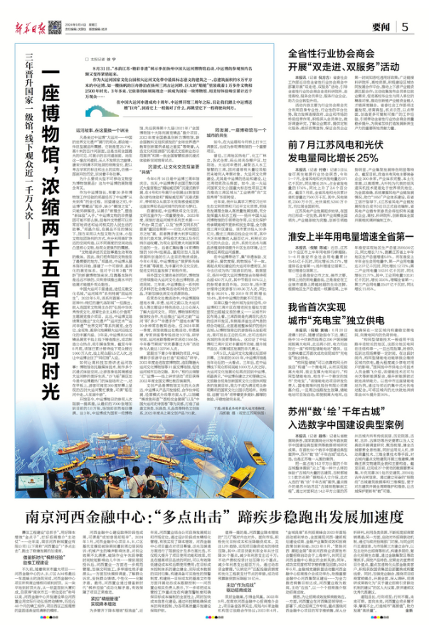 9月4日,《新华日报》以《三年晋升国家一级馆,线下观众近一千万人次 ——一座博物馆,浓缩两千五百年运河时光》为题,走近中运博这艘“巨舟”。现全文转发,以飨读者。