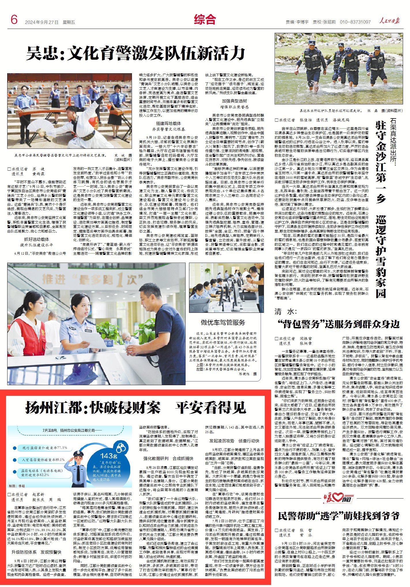 9月27日出版的《人民公安报》,在6版刊发报道《扬州江都:快破侵财案 平安看得见》,报道称:在夏季治安整治打击行动中,江苏省扬州市公安局江都分局紧盯多发性侵财案件,通过合成作战快侦快破,7月至8月现行盗窃案件、入室盗窃案件、盗窃电动车(电动车电瓶)案件的破案率,分别达到77.1%、89.1%、82.2%,其中盗窃案件24小时、48小时内破案率达56.1%和60.8%。