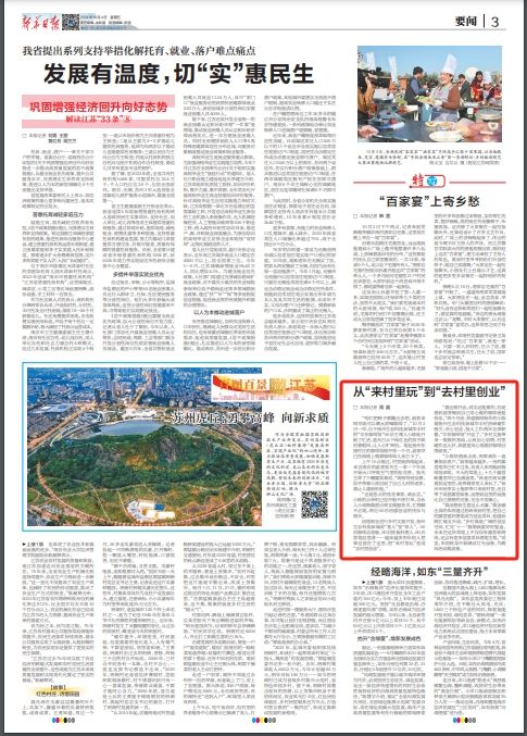 10月4日,《新华日报》刊发题为《从“来村里玩”到“去村里创业”》的文章,文中提及越来越多的年轻人去乡村创业。现全文转发,以飨读者。