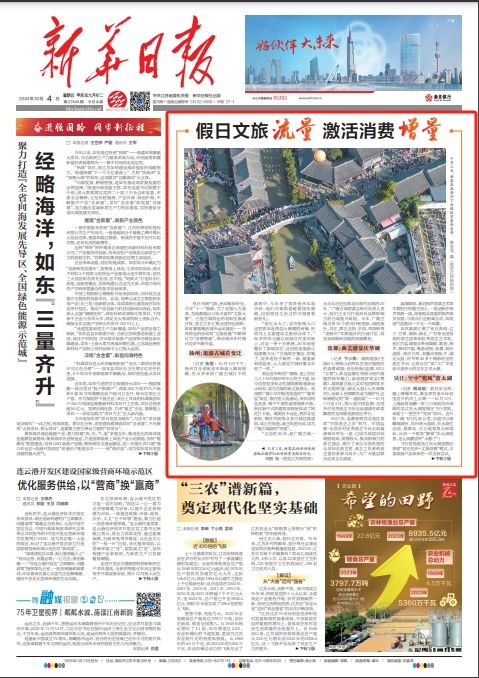 10月4日,《新华日报》刊发题为《假日文旅流量激活消费增量》的文章,文中提及国庆期间,游客逛百年老街皮市街,感受古城变迁。现转发,以飨读者。