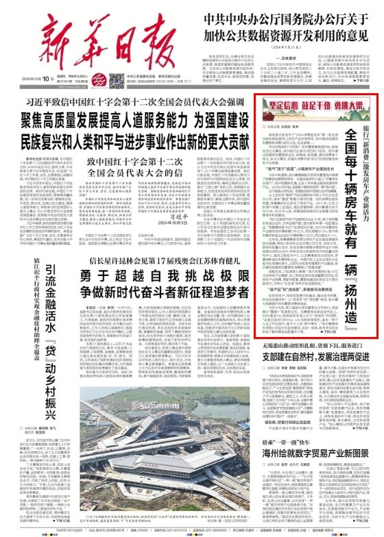 10月10日,《新华日报》刊发题为《全国每十辆房车就有一辆“扬州造”》的文章,现全文转发,以飨读者。