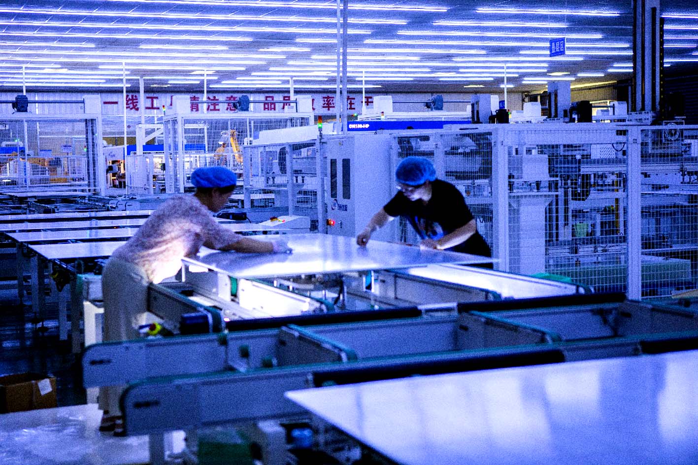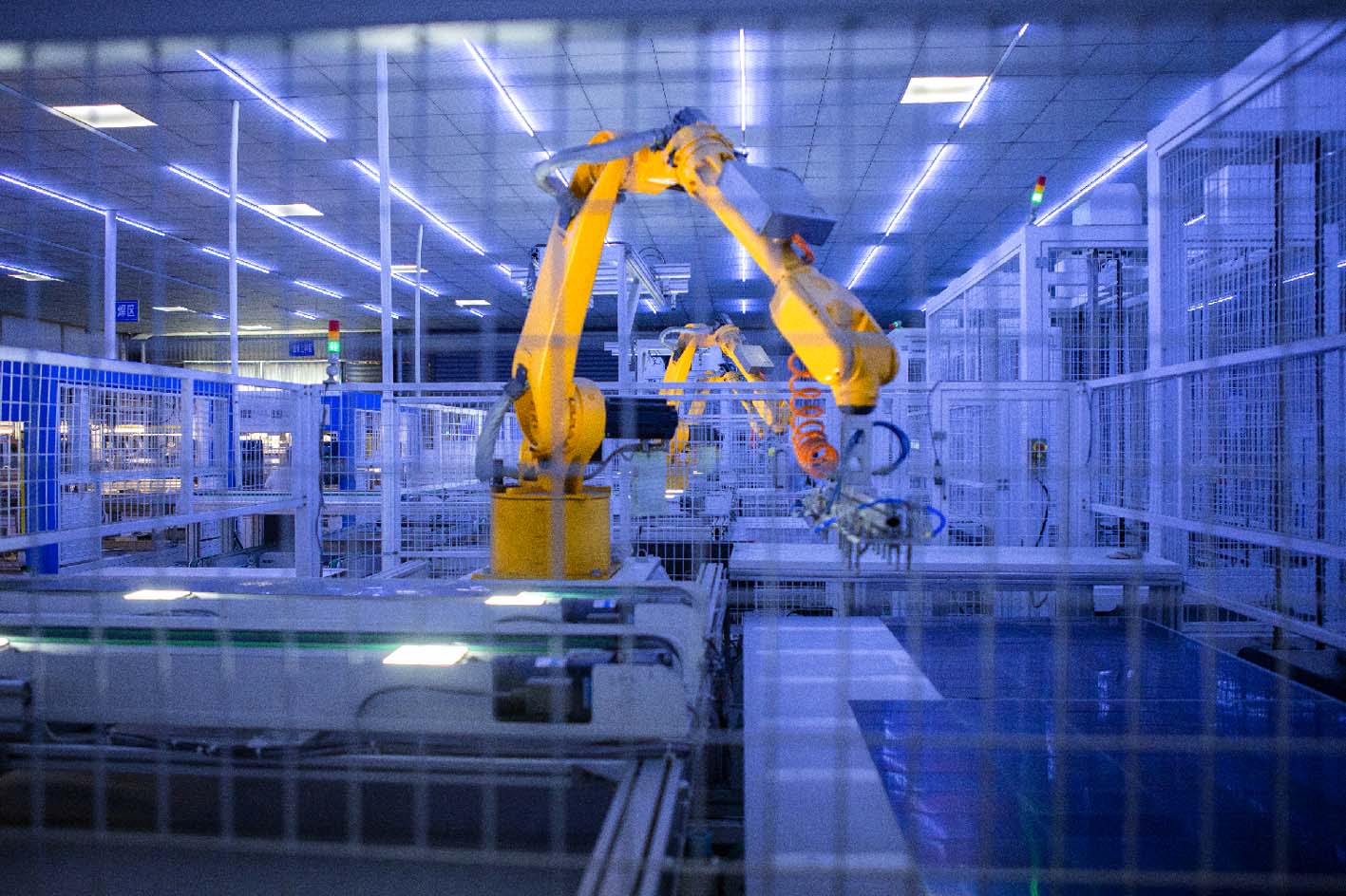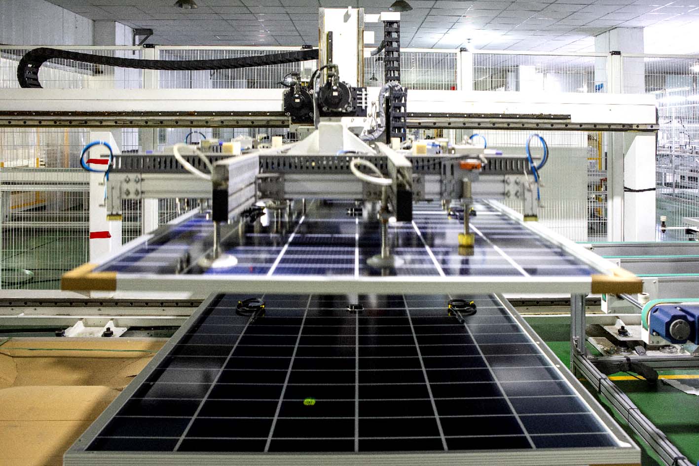 机械臂挥舞,自动抓取材料,串焊、叠层、层压、装框、清洗、包装……一天下线超千件光伏组件产品。记者10月16日在位于仪征市大仪镇的扬州善鸿新能源发展有限公司生产车间看到,企业生产线正在全自动运转,开足马力赶制出口的光伏太阳能组件订单。光伏发电是最优质的绿色能源之一,而光伏组件是光伏发电系统中的核心部分。近年来,大仪镇以助推绿色低碳发展为目标,积极引进高效光伏组件项目,大力发展光伏产业,培育壮大太阳能光伏产业链,助力乡镇经济发展。 乔家明 徐春勇 摄