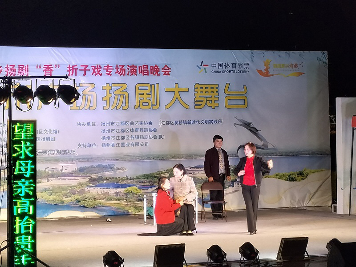 10月19日晚,江都区吴桥镇在江都龙川广场举办扬剧专场演出,吴桥镇文化志愿者协会戏曲分会30多名志愿者先后表演了舞狮《狮舞龙川大运来》《孟丽君》《武家坡》等传统扬剧经典唱段,特别是新编扬剧表演唱《交通安全最重要》和宣传孝亲敬老美德的小扬剧《第31天》受到观众热捧。 张正才 摄
