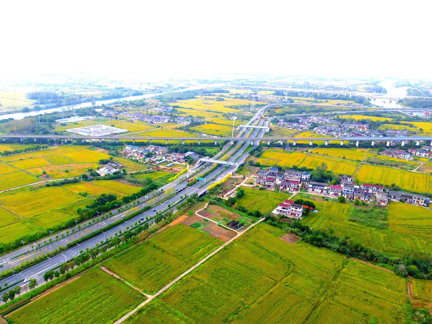 霜降时节,江都稻田呈现田园丰收美景