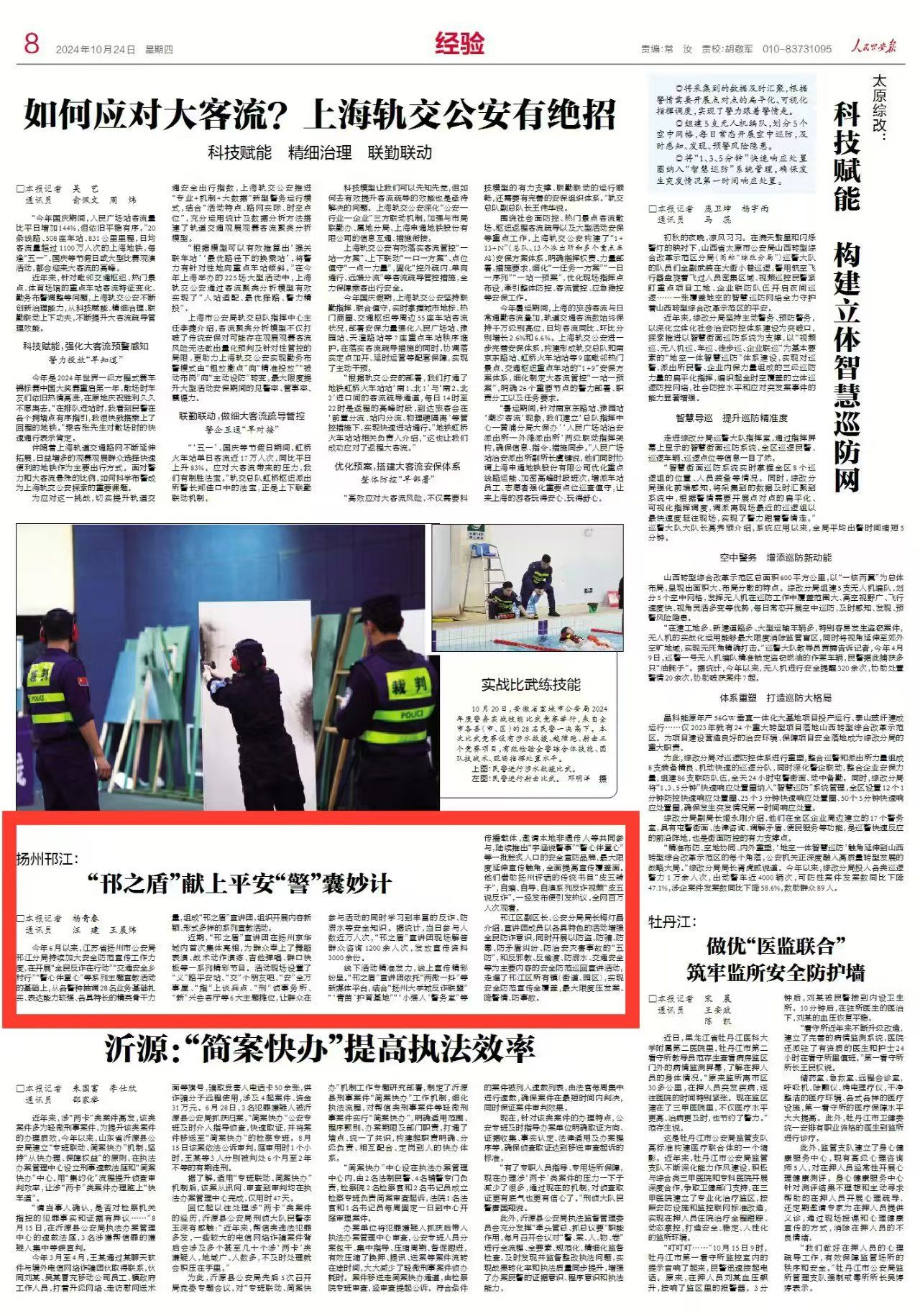10月24日出版的《人民公安报》,在8版刊发报道《扬州邗江:“邗之盾”献上平安“警”囊妙计》,报道称:今年6月以来,江苏省扬州市公安局邗江分局持续加大安全防范宣传工作力度,在开展“全民反诈在行动”“交通安全乡村行”“警心伴童心”等系列主题宣教活动的基础上,从各警种抽调28名业务基础扎实、表达能力较强、各具特长的精英骨干力量,组成“邗之盾”宣讲团,组织开展内容新颖、形式多样的系列宣教活动。