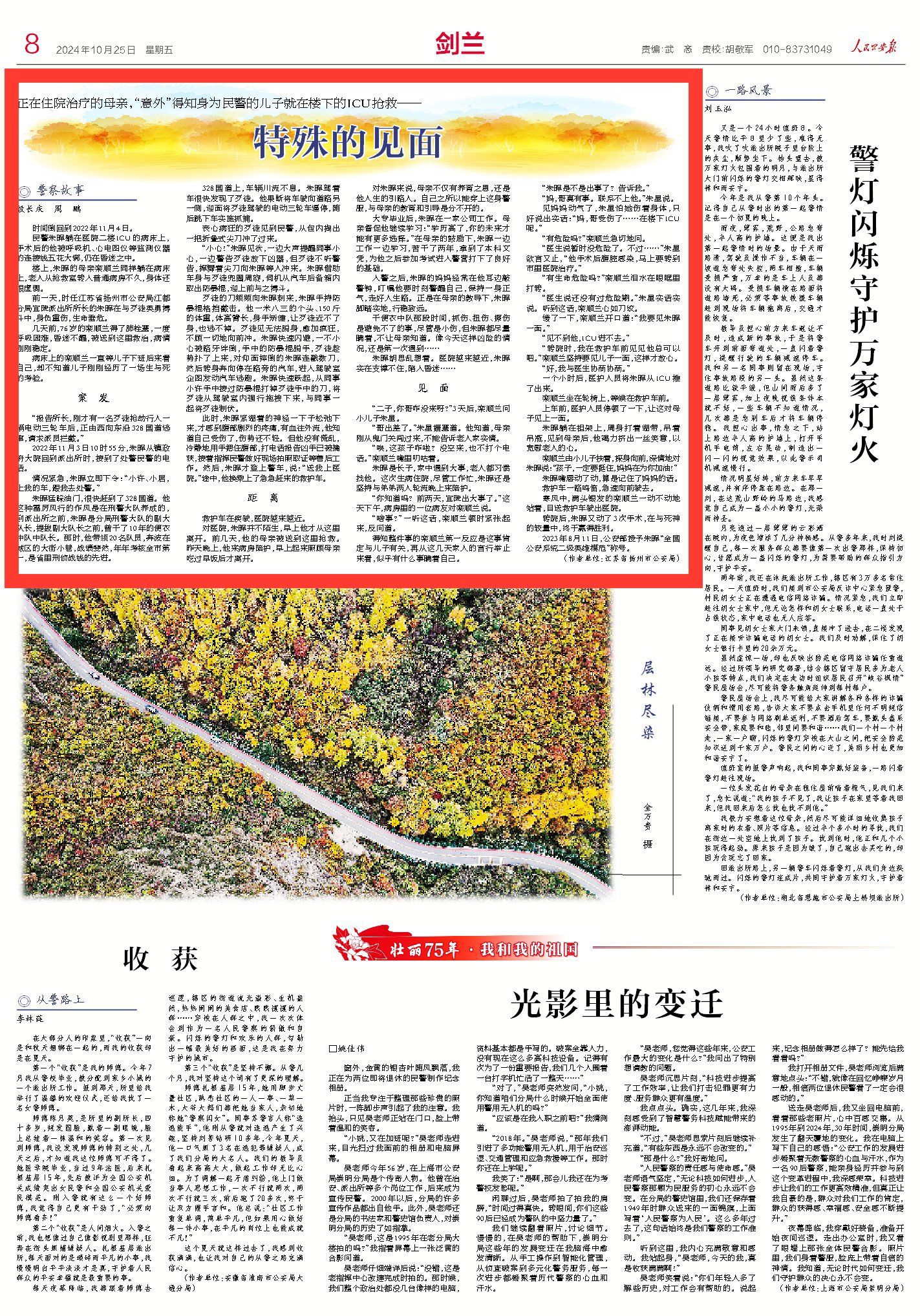 25日出版的《人民公安报》刊发通讯《特殊的见面》,文章中描述了扬州市公安局江都分局民警与歹徒英勇搏斗中,身负重伤,随后被紧急送往医院ICU,而他76岁的母亲也在这家医院救治……