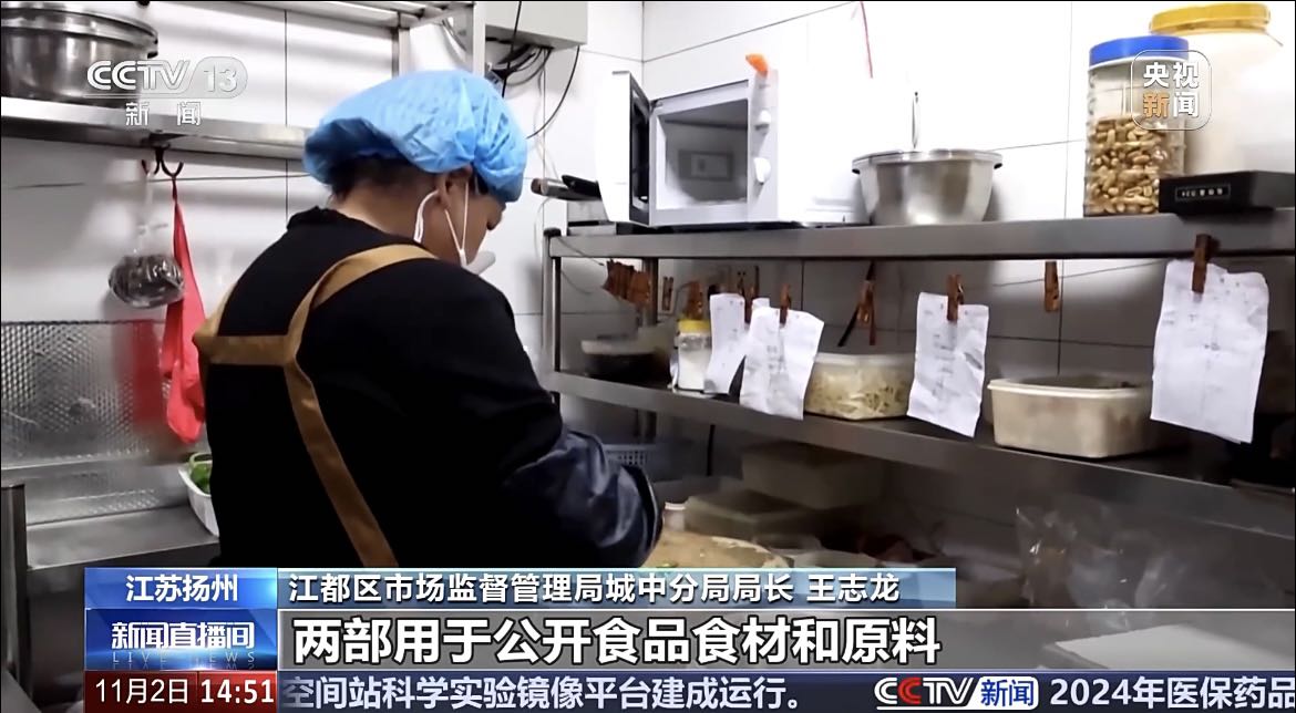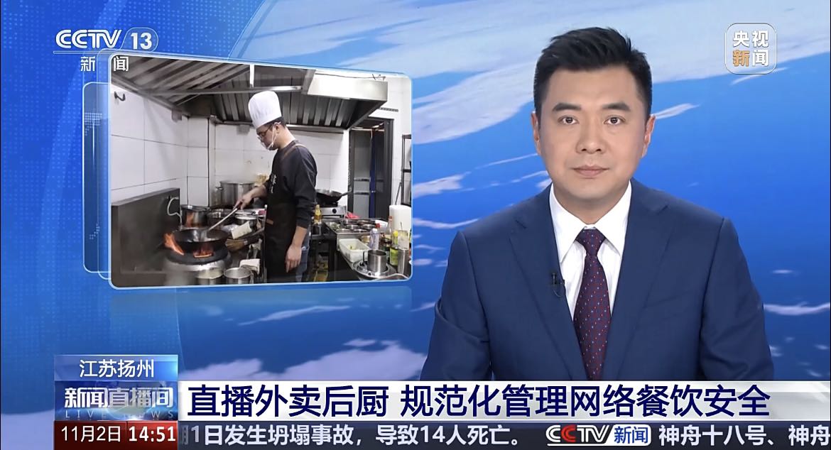 11月2日,央视《新闻直播间》栏目以《直播外卖后厨 规范化管理网络餐饮安全》为题,点赞了扬州率先在江都区启动了网络餐饮食品安全规范化管理,让网络餐饮的后厨环境与制作过程更透明,让消费者点得放心、吃得安心。