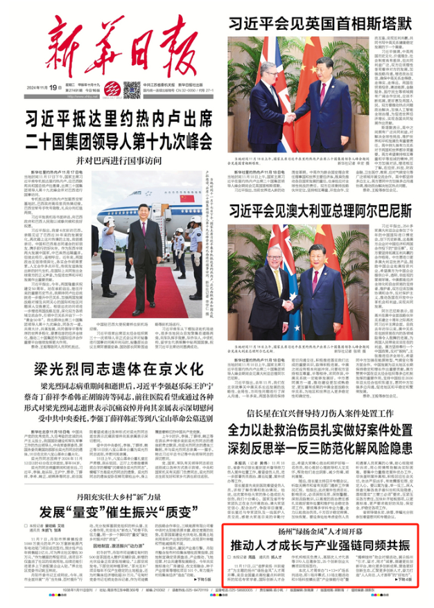 11月19日,《新华日报》头版刊发题为《扬州“绿扬金凤”人才周开幕推动人才成长与产业强链同频共振》的文章,扬州发布现全文转发,以飨读者。