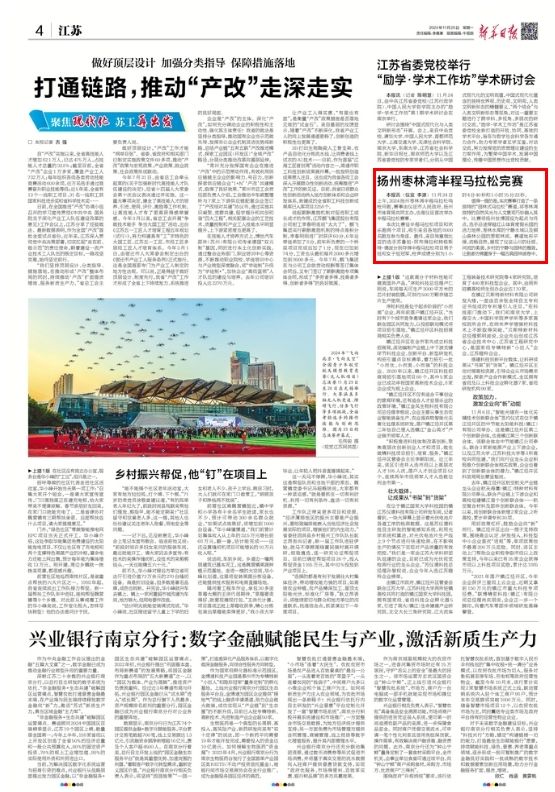 11月25日,《新华日报》刊发题为《扬州枣林湾半程马拉松完赛》的文章,现全文转发,以飨读者。