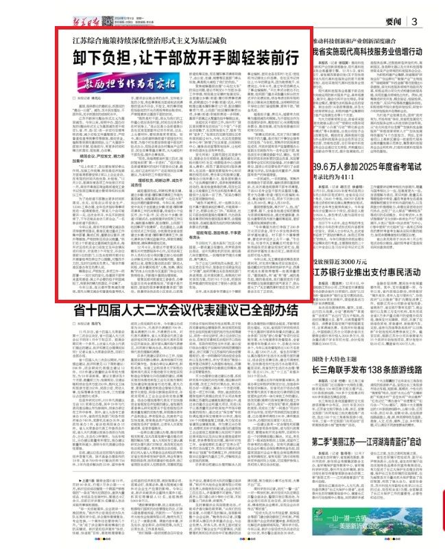 12月9日,《新华日报》刊发题为《卸下负担,让干部放开手脚轻装前行》的文章,现全文转发,以飨读者。