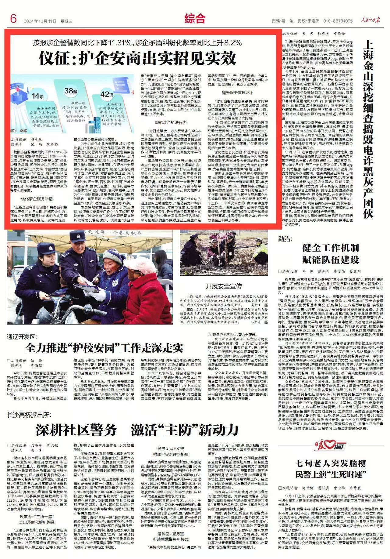 12月11日出版的《人民公安报》以《仪征:护企安商出实招见实效》为题,报道了今年以来,江苏省仪征市公安局立足“优化涉企服务举措、规范涉企执法行为、提升服务管理水平”三个方面,牢固树立“法治是最好的营商环境”理念,统筹抓好风险防范、打击治理、隐患整治、改革创新等工作,充分发挥公安职能作用,积极提供优质便捷服务,切实提高经营主体和群众的获得感和满意度。现全文转发,以飨读者。