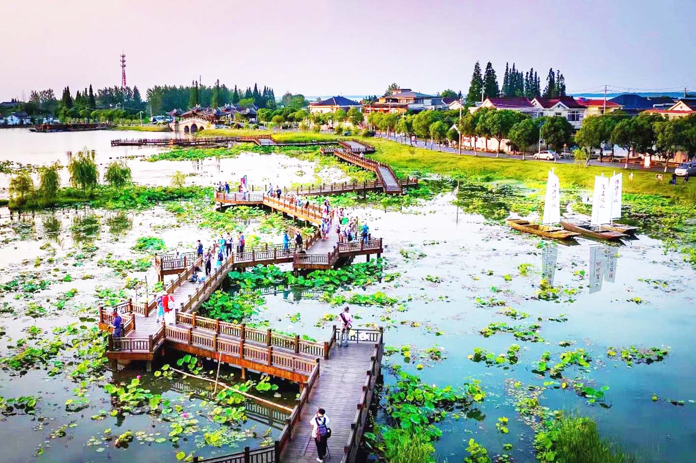 多年前,邗江区方巷镇沿湖村还是大家口中的“渔花子村”,如今变成“全国最美渔村”,去年村里接待游客30多万人次,旅游收入达3200万元,村集体收入达305万元,渔民人均收入为3.61万元,唱响了乡村振兴、共同富裕的“渔家傲”。