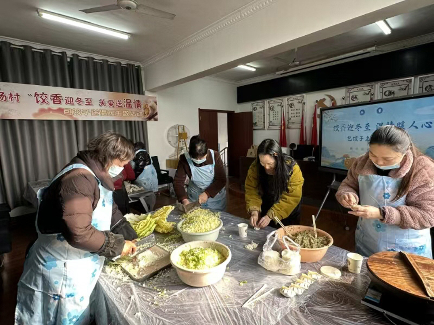 扬州网讯 (通讯员 杨永勤 记者 崔根元) 21日是冬至,昨日,西湖街道胡场村举办“饺香迎冬至 关爱送温情”包饺子送温暖活动。和面、切菜、拌馅……将馅料放在饺子皮中心,两边轻轻一捏,一个个状若元宝、美味可口的饺子就完成了。村民们彼此间交流着家常,分享着动手的快乐,空气中弥漫着“家”的温馨。