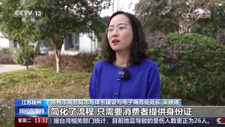 扬州市商务部门提醒,这次补贴仅限个人消费者,对购车者户籍、上牌地不做限制。扬州市商务局市场体系建设与电子商务处处长吴婷婷:“简化了流程,只需要消费者提供身份证、购车发票和行驶证即可,极大了方便大家的申请。”