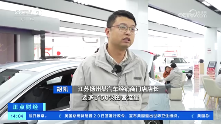 扬州某汽车经销商门店店长胡凯:“我们比之前可能进店多了50%的客流量。”