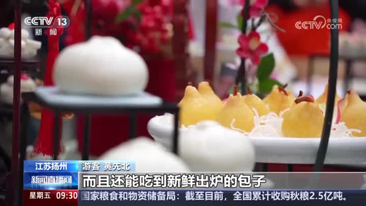 游客黄先北说,扬州很有过年的氛围,仁丰里这还能看到舞龙舞狮表演,吃到新鲜出炉的包子,觉得非常有年味。
