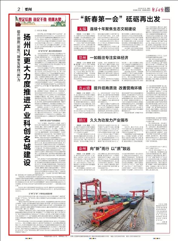 2月7日,《新华日报》刊发题为《扬州以更大力度推进产业科创名城建设》的文章,现全文转发,以飨读者。