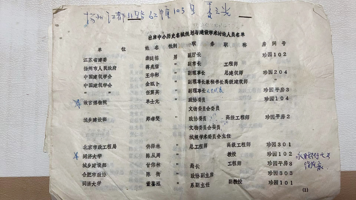▲《出席中小历史文化名城规划与建设学术讨论人员名单》。 倩雯 摄