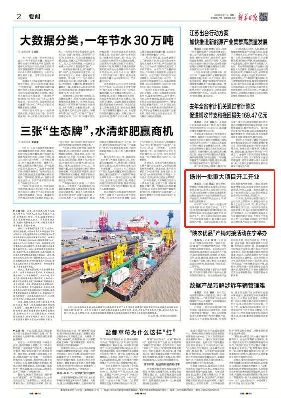 2月17日,《新华日报》刊发题为《扬州一批重大项目开工开业》的文章,现全文转发,以飨读者。
