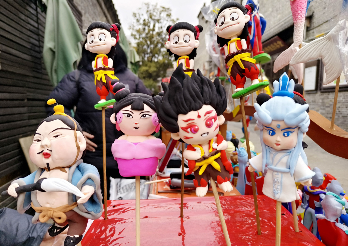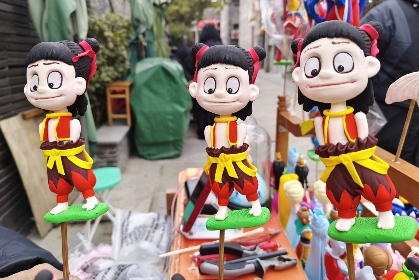 《哪吒之魔童闹海》热度节节攀升,相关周边也一“吒”难求。2月21日,在东关街,扬州面塑市级非遗传承人孟晓红用一双巧手捏出面塑版的哪吒、石矶娘娘、太乙真人等形象,惟妙惟肖,纤毫毕现。 记者 司新利 摄