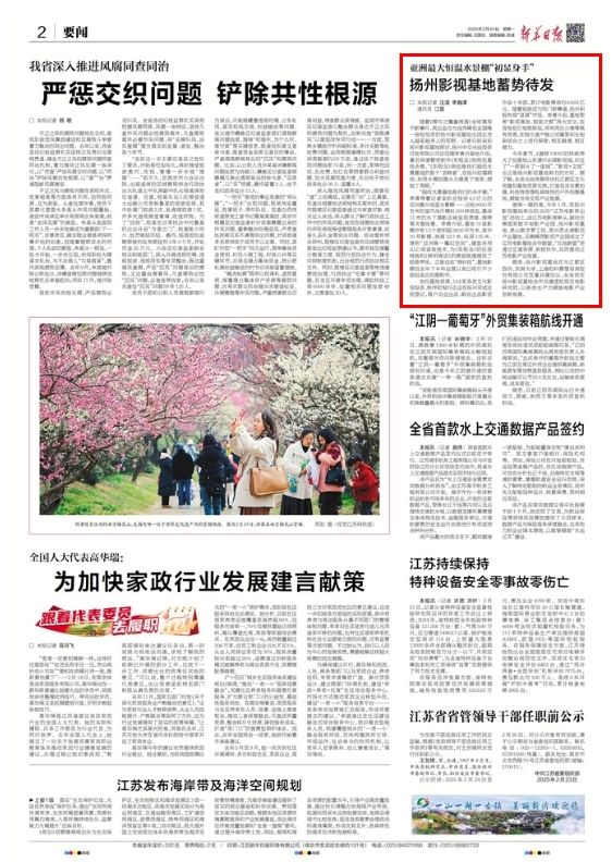 2月24日,《新华日报》刊发题为《扬州影视基地蓄势待发》的文章,现全文转发,以飨读者。