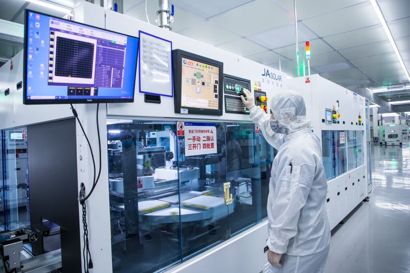 作为全市首家零碳工厂,扬州晶澳基地率先搭建了高效能源站和节能改造、余热回收、绿色降碳控制等系统,年发电量约2200万度,年减少碳排放约1.25万吨。