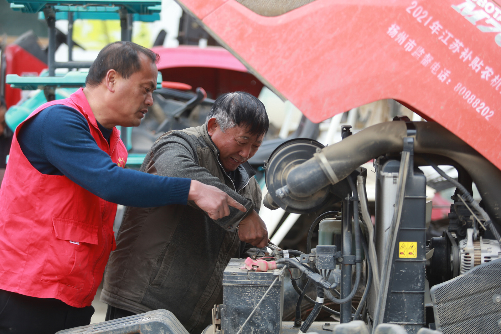 昨天,高邮市卸甲镇花阳村组织党员志愿者开展春耕备耕技术指导,对辖区农户的农用拖拉机、插秧机等农机具进行保养、调试和检修,确保春耕顺利进行。 孟德龙 摄