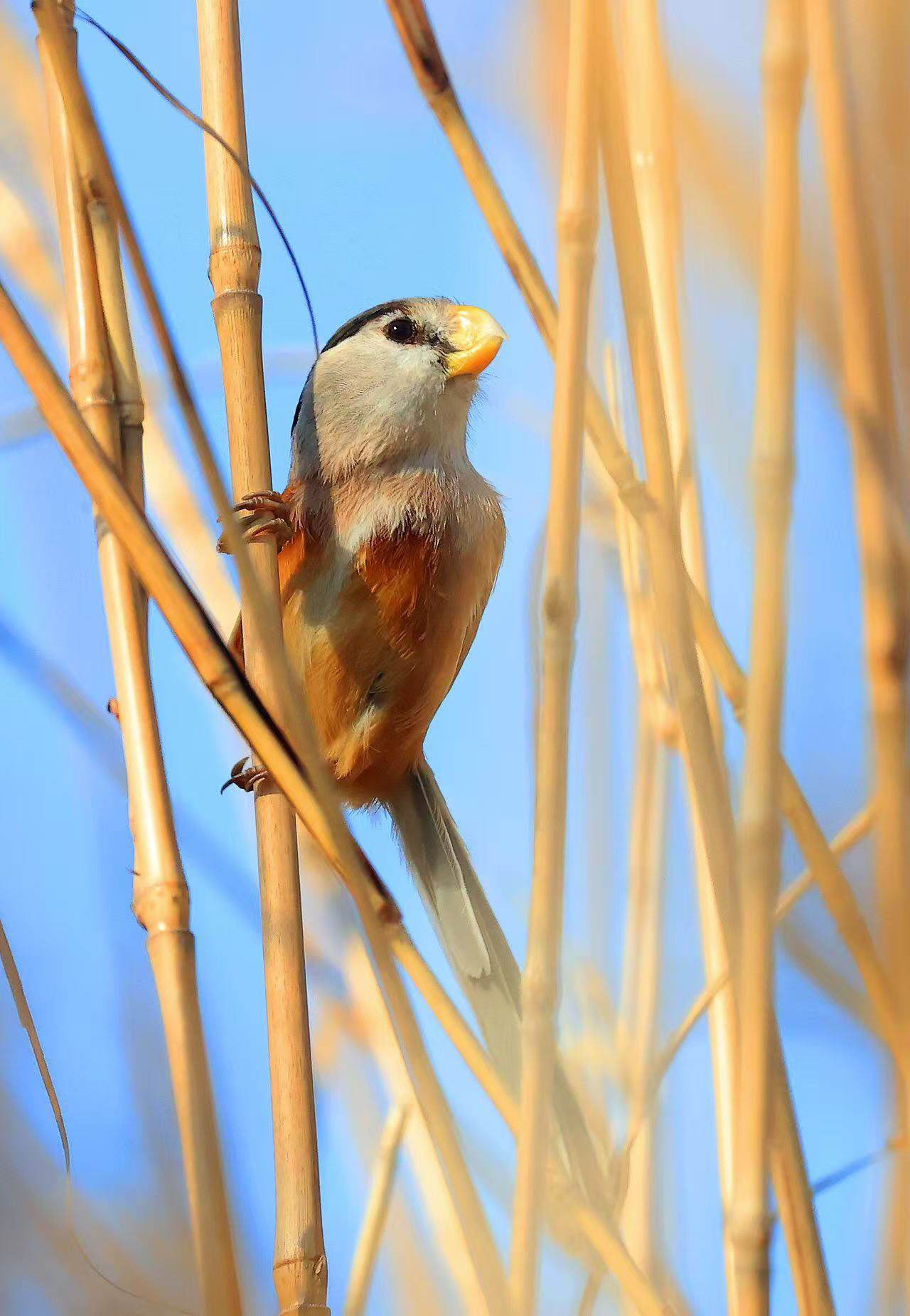 昨天,一只震旦鸦雀在高邮湖畔芦苇丛中现身。震旦鸦雀羽毛色彩艳丽,是中国特有的珍稀鸟类,被称为“鸟中大熊猫”,是湿地生态系统的重要指示物种,对水质、植被和栖息地的完整性要求极高。它们的存在往往意味着湿地环境的健康。