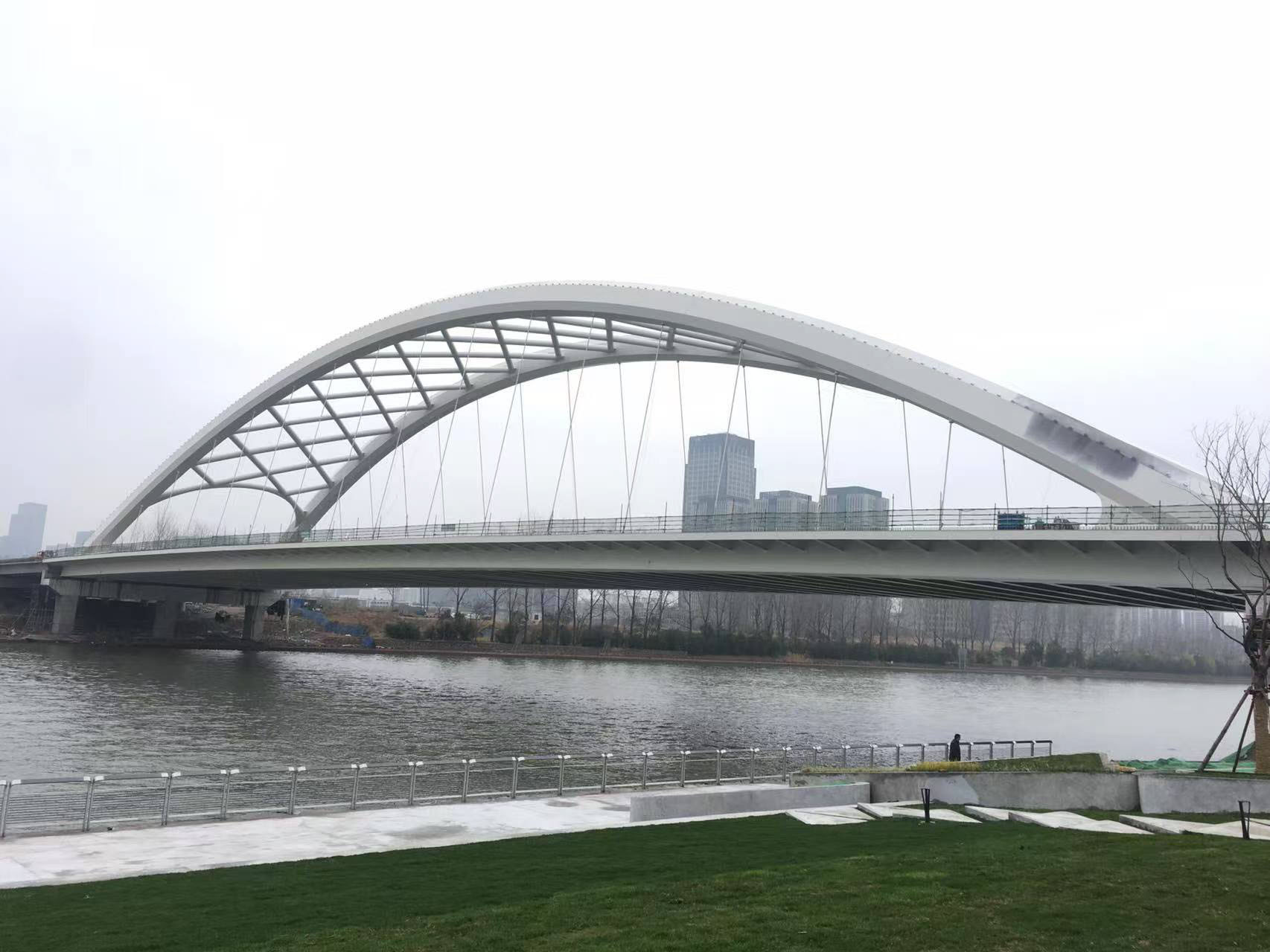 记者在二里桥路跨运河大桥施工现场看到,工人们正在紧张进行栏杆桥面附属设施作业,力争下月大桥具备通车条件。姜传刚 摄