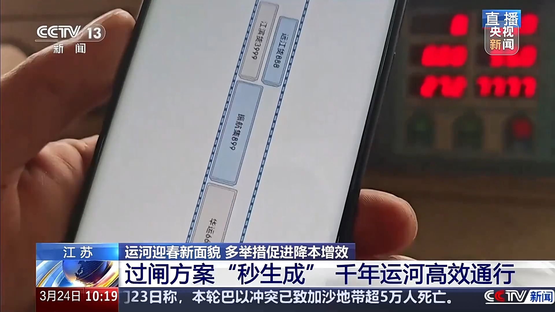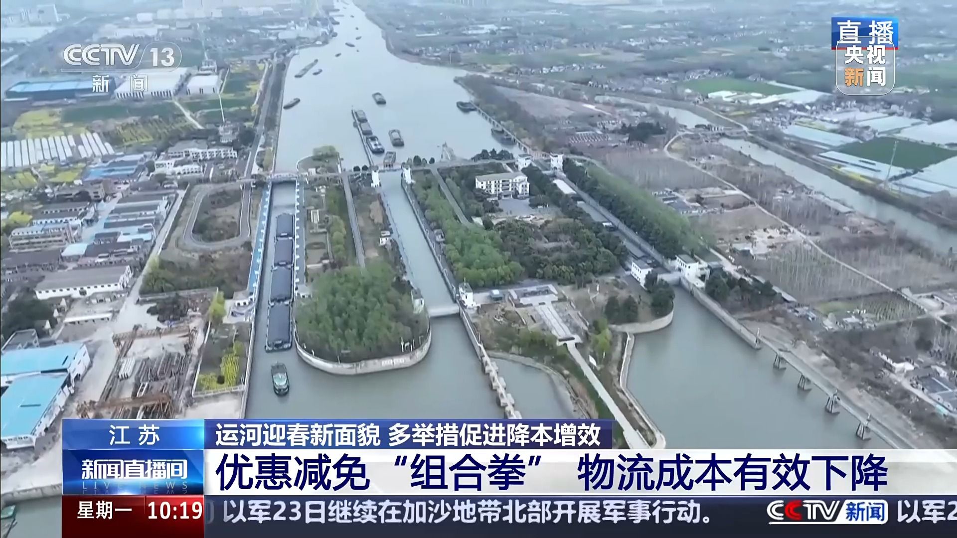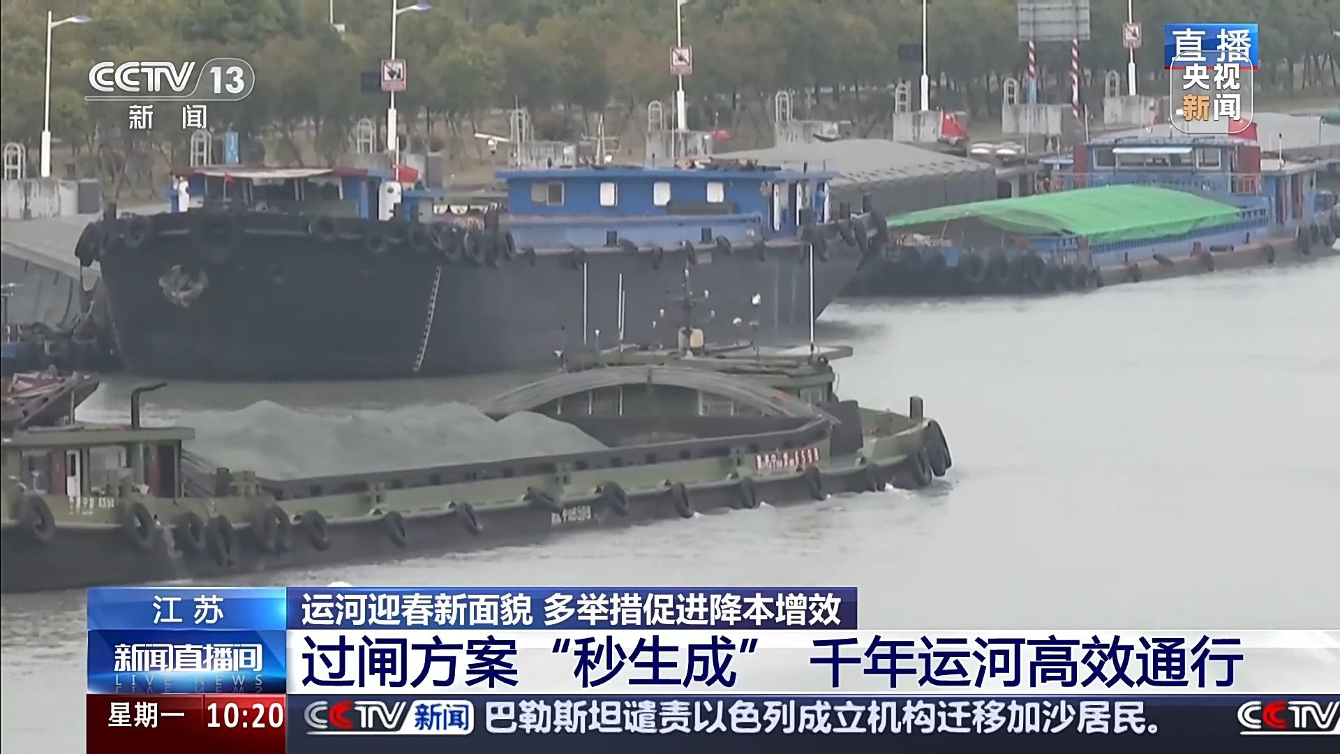 京杭大运河苏北段施桥船闸是苏北运河入江的最后一道船闸,作为大运河航道上的重要枢纽,每天都有数百艘船舶在此通行。今天,央视《新闻直播间》走进苏北运河扬州运行调度中心,关注报道为有效降低物流成本,促进形成更加安全畅通便捷高效的水运体系,千年古运河迎来的新的发展机遇。