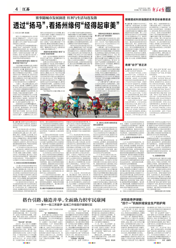 4月1日,《新华日报》4版刊发题为《透过“扬马”,看扬州缘何“经得起审美”》的文章,现全文转发,以飨读者。