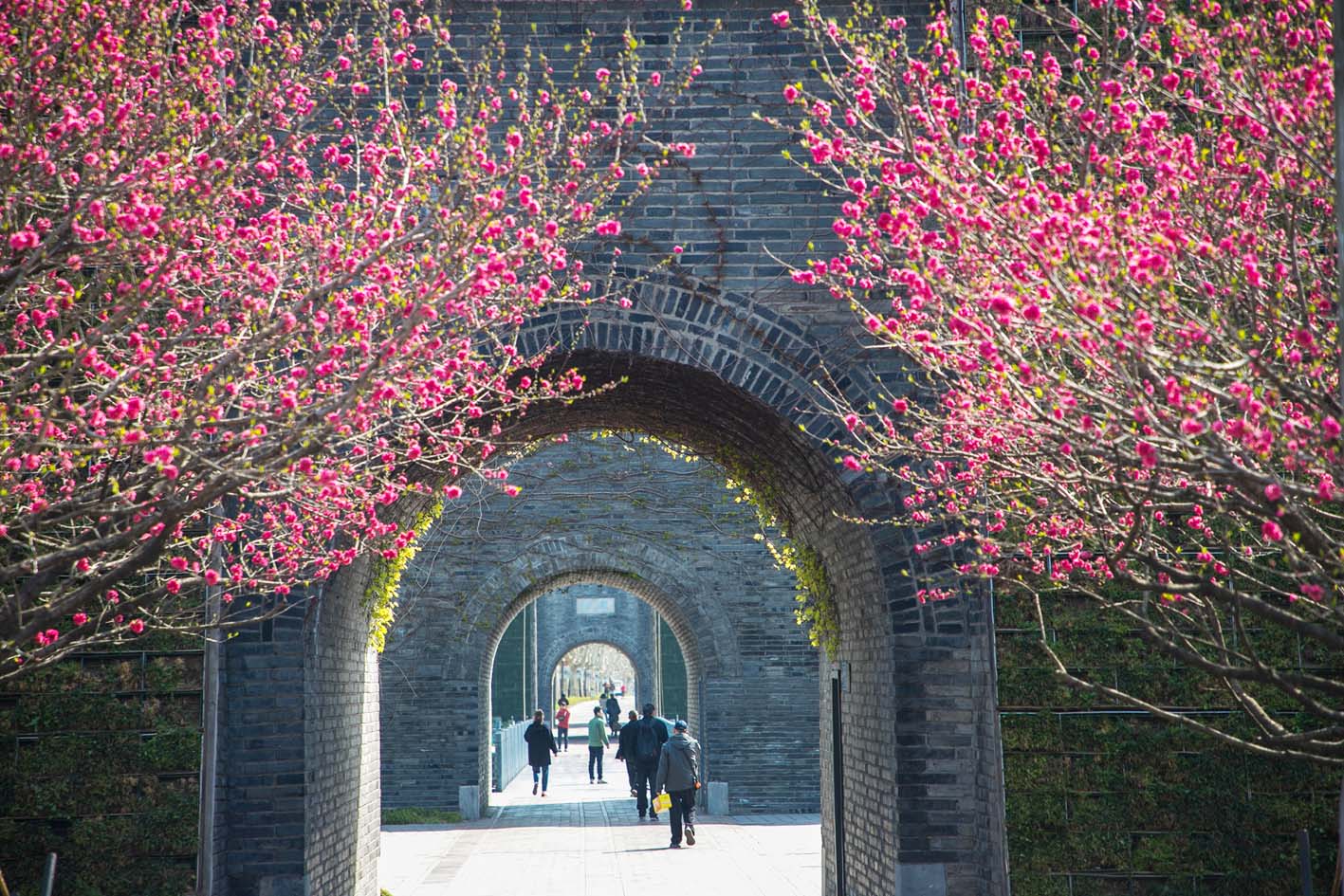 扬州的春天,少不了依依垂柳和灼灼桃花。眼下,扬州湖畔边、公园里的各色桃花竞相绽放,“桃红柳绿”的经典春色“上线”。宋夹城体育休闲公园里,各种桃花绽放枝头,白的如雪、粉的似霞、红的若焰,将千年古城的诗意与春意推向极致。市民游客在园内穿行,被明媚春色所吸引,纷纷拿出手机拍照留念,一眼望去,人也入了画。 王权振 史盼盼 摄