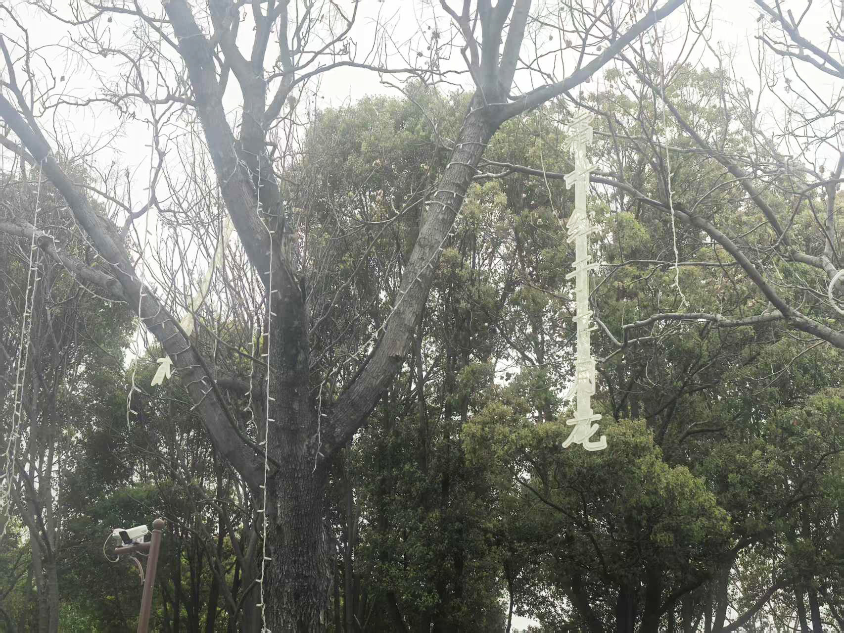 “谁知竹西路,歌吹是扬州”“淮左名都,竹西佳处”,大运河原点公园沿路设置的一排排以古诗词为主基调的灯饰,当初悬挂时曾是沿途一道亮丽的风景线。而随着时间的推移,这些灯饰失去了当年的光彩,褪色严重,字体也比较模糊了。记者看到,一个挂在树上的“霜叶红于二月花”灯饰,几乎只剩下字的框架,没有了色彩。