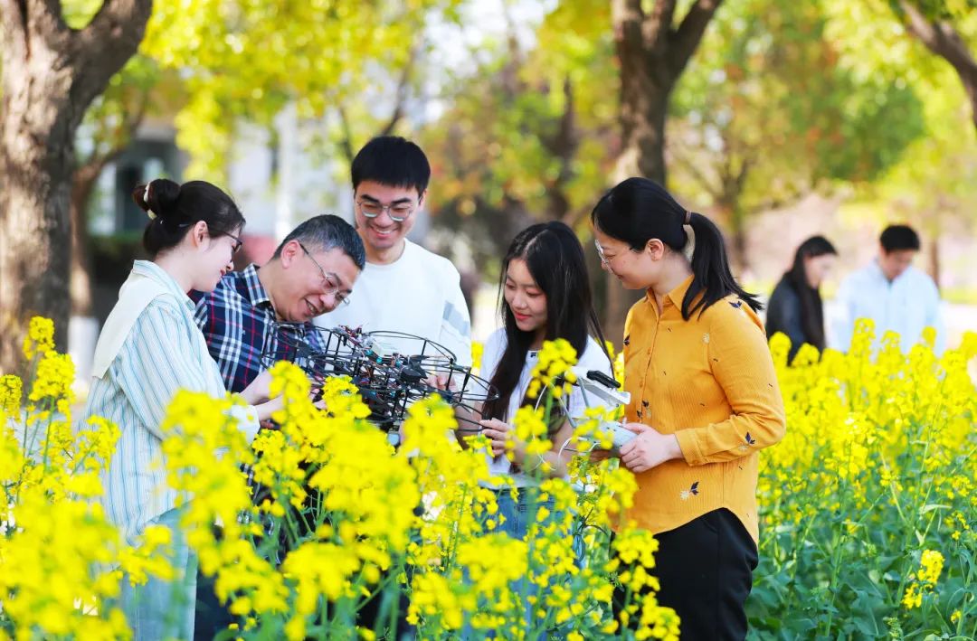 阳春三月,扬州大学扬子津校区金灿灿的油菜花田边,信息工程学院(人工智能学院)教授李斌,智慧农业与领域软件团队贺大为、蔡杰老师正带着“创新创业实验班”的学生们进行无人机调试。在这堂别开生面的“电子系统综合设计与创新”课上,学生们从传统教室走到了田间地头,在真实环境中检验科学技术应用。