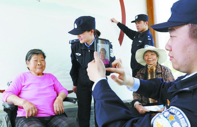 4月20日,户籍民警在辖区村庄为群众拍摄身份证照片,办理身份证件。沈冬兵 摄