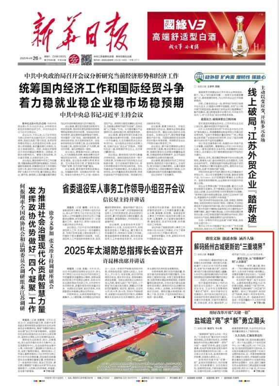 4月26日,《新华日报》头版刊发题为《解码扬州古城更新的“三重境界”》的文章,现全文转发,以飨读者。