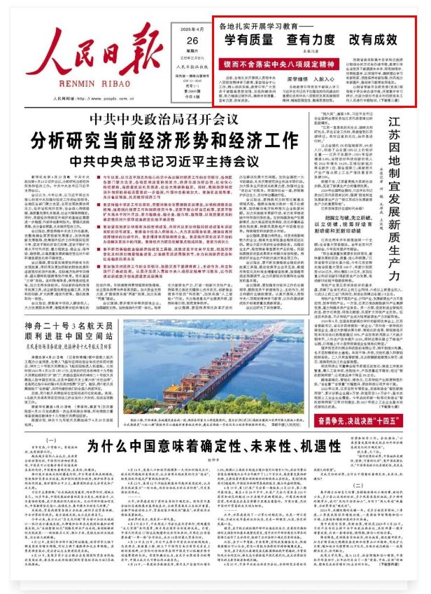 4月26日,《人民日报》头版刊发《学有质量 查有力度 改有成效(锲而不舍落实中央八项规定精神)》,关注报道扬州市广陵区坚持在查中改、改中悟,深入开展“小切口”专项整治和营商环境优化等有关做法。现全文转发,以飨读者。