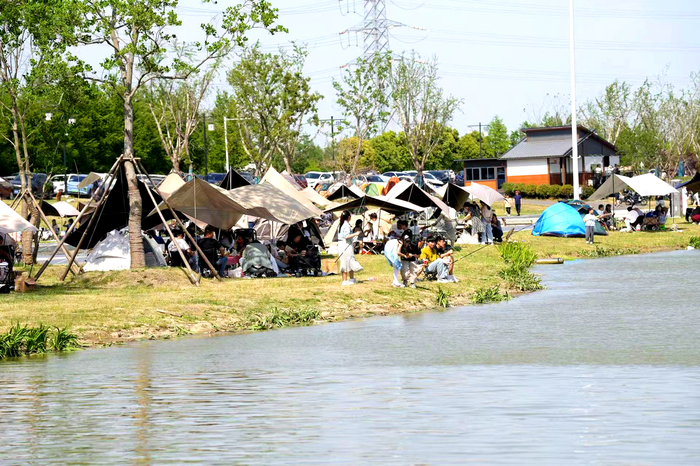 邗江区瓦窑村的窑心湖畔,晨光熹微中,一顶顶帐篷如雨后蘑菇般悄然生长。清晨7点,市民刘锡明一家已熟练地架起烧烤架,缕缕烟火升腾而起。刘锡明一边调试相机参数,一边将镜头对准在帐篷前冲泡咖啡的妻子。画面里,繁茂绿树与木质栈道相映成趣,晨光温柔地洒下,为整个场景晕染出一层朦胧的滤镜,宛如一幅生动的田园画卷。