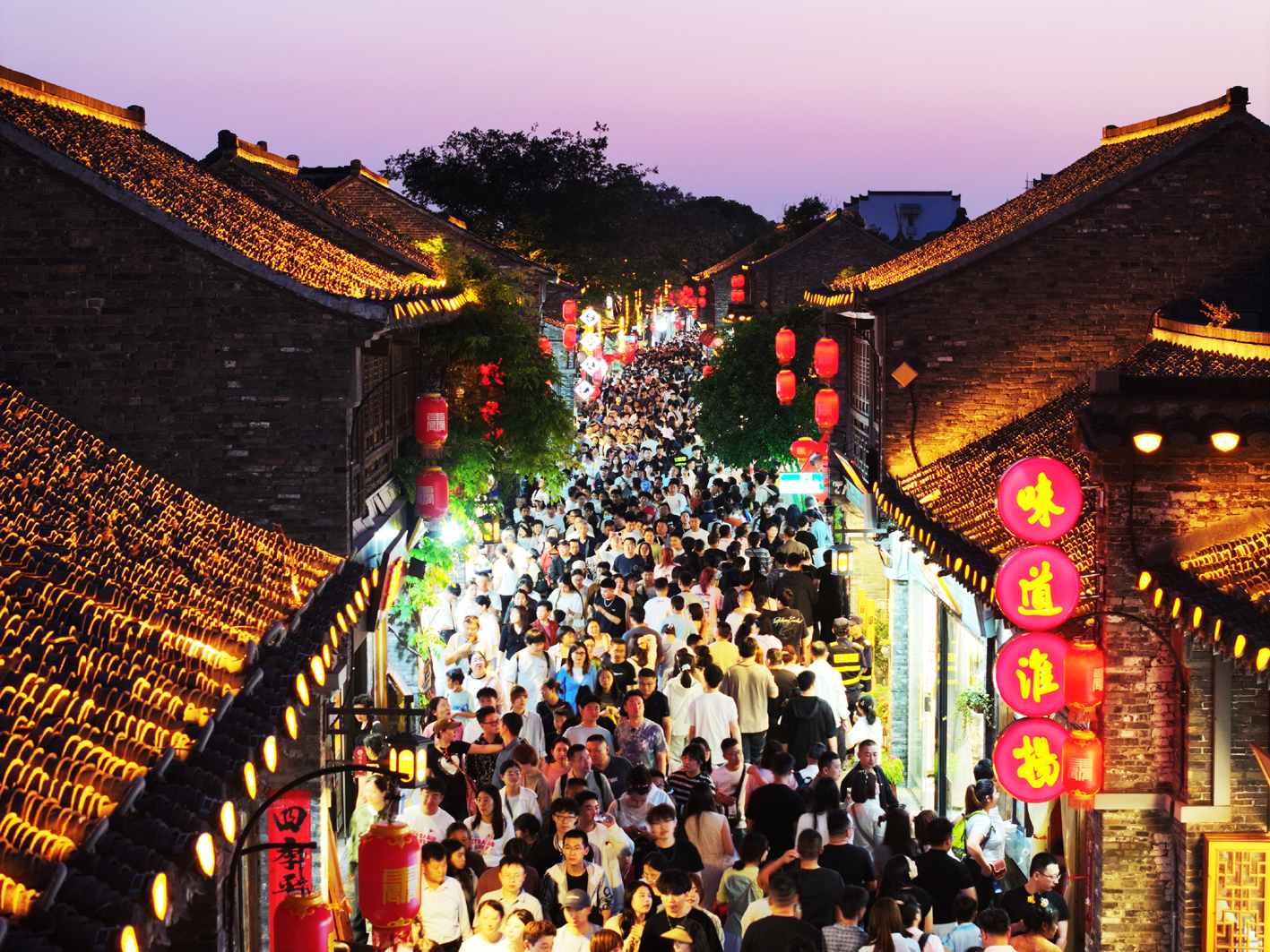 夜晚的东关街灯光璀璨,吸引众多游客。