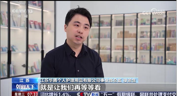江苏华腾个人护理用品有限公司事业部总监 穆龙生:这也是我们第一次在国内的亮相,意味着我们正式进军国内市场,也是国内市场对我们产品的一个认可。
